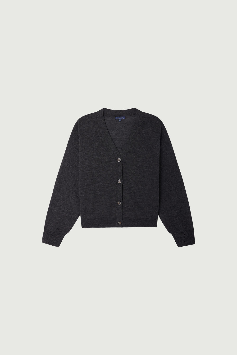 IDEM es un cárdigan amplio con un gran escote en V. Está tejido en una lana merino fina para llevar directamente sobre la piel. Acabados de canalé ajustan el dobladillo y las mangas. Los hombros caídos y las aberturas laterales aportan un toque moderno a este jersey aparentemente clásico.