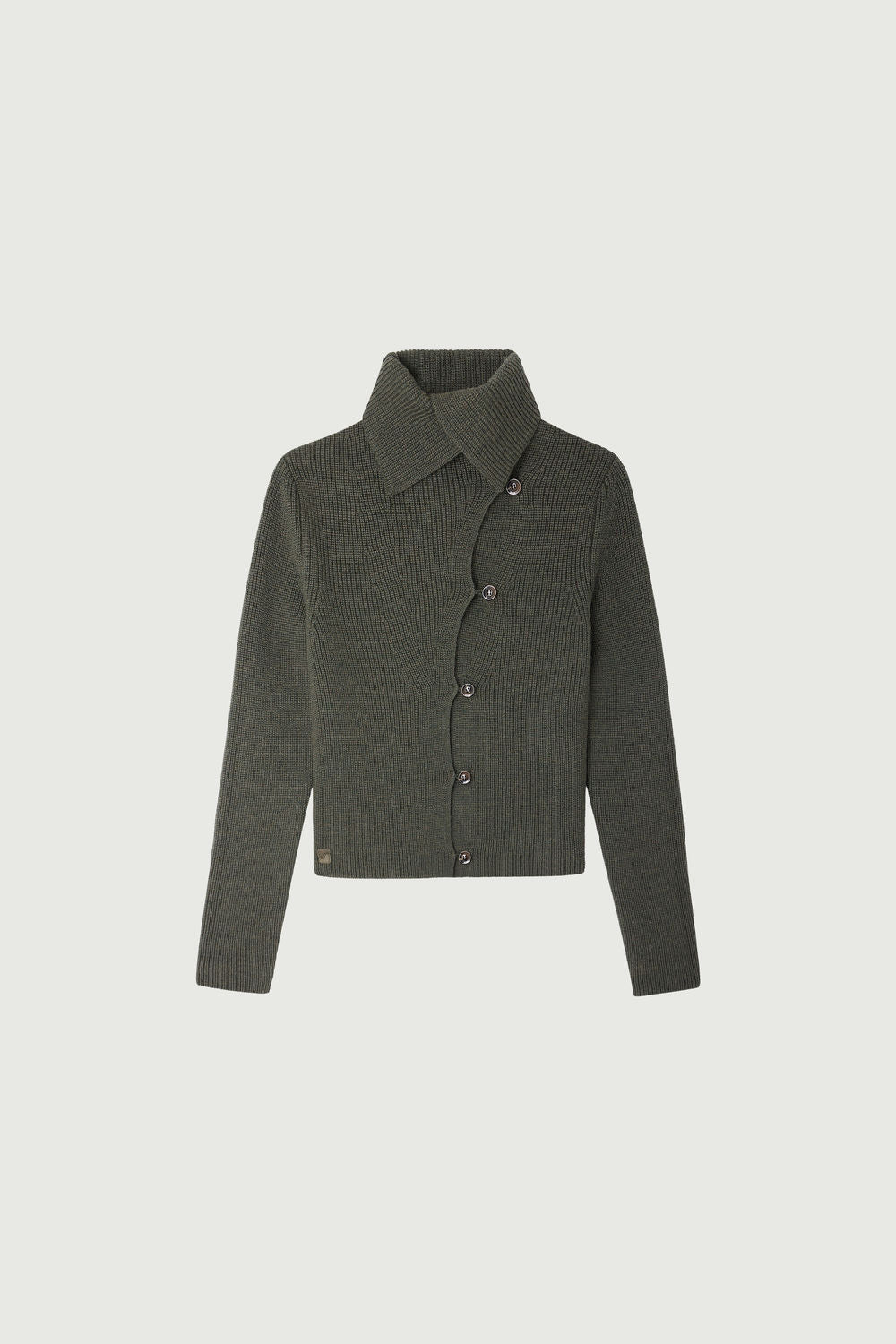 WIMY es un cárdigan ajustado en punto acanalado. Numerosos botones permiten un cuello modulable, para llevarlo cerrado o abierto. Se puede llevar como un cárdigan directo sobre la piel o en superposición como una chaqueta fina. Forma parte de nuestra línea bordada del monograma "S". Esta versión es de lana merino fina y cálida.