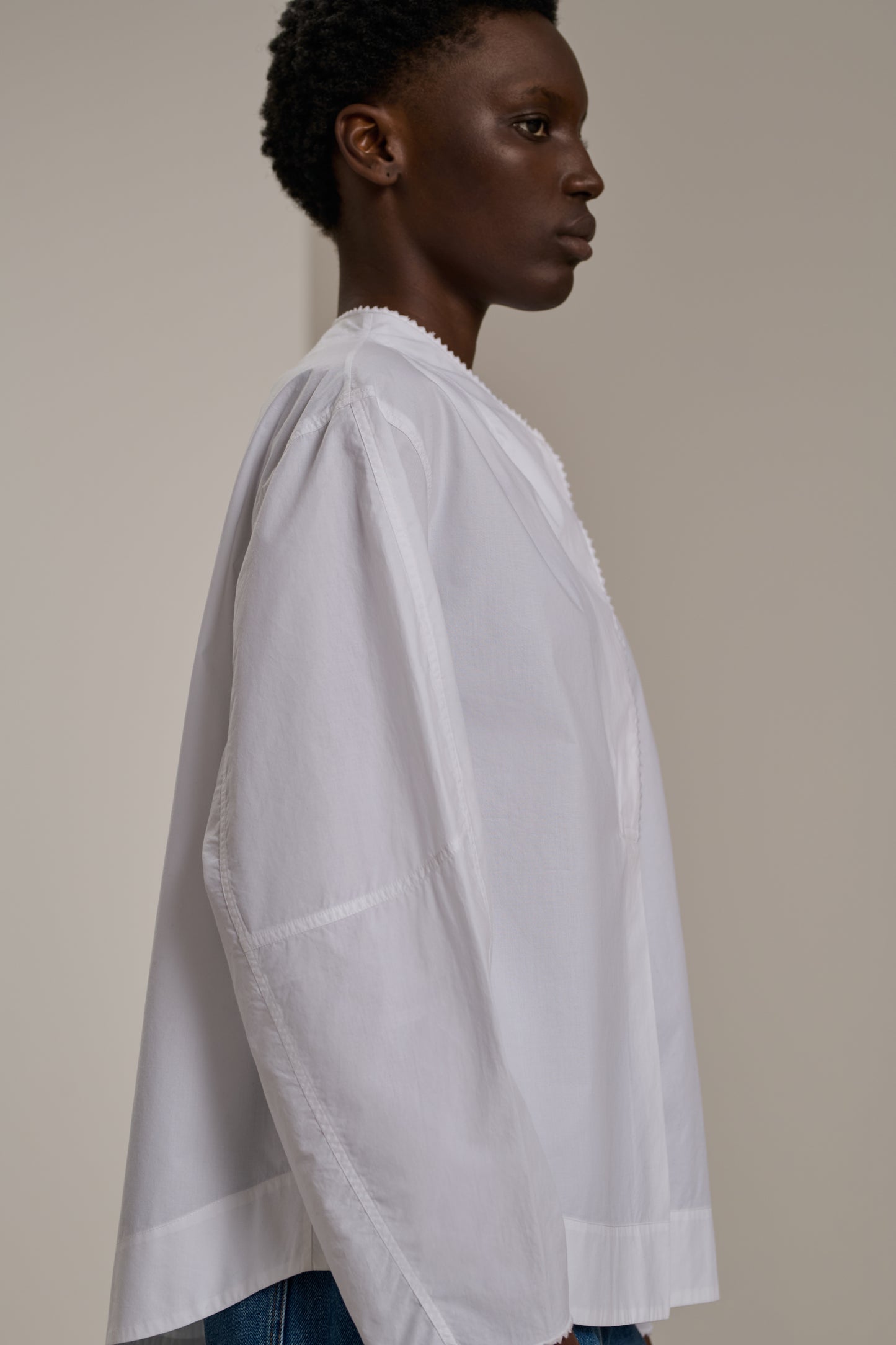 BERRY es una camisa de popelina de algodón con corte recto. Las mangas largas y el cuello se destacan por un delicado detalle de bordado, añadiendo una nota de feminidad sutil. Una camisa aparentemente clásica que combinará bien en tu guardarropa.
