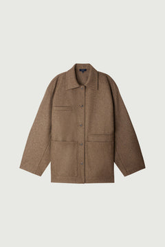 GRENADE es una camisa oversize de popelina de algodón orgánico color rosa madera. Corte amplio, cuello con pespuntes, apertura con botones y bajo en forma de cola.