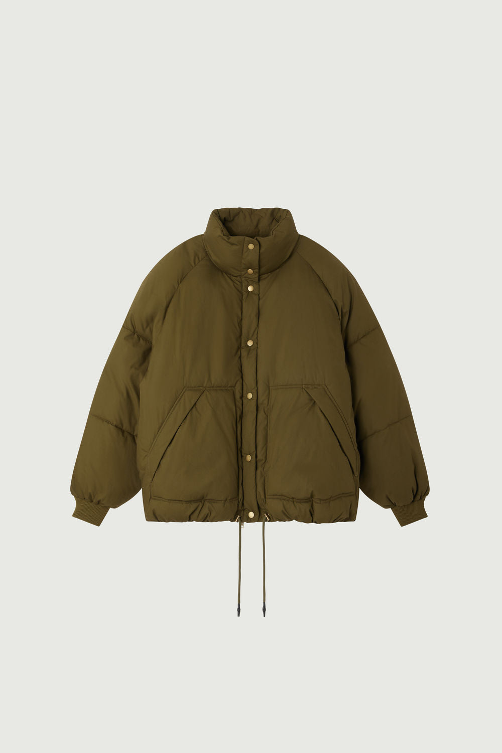 WING es un plumífero corto de popelina repelente al agua en un tono de caqui. Ofrece mangas largas raglán y una apertura con tapeta de botones y cremallera oculta. Los bolsillos raglán pespunteados, con forro de lana, añaden calidez y funcionalidad, mientras que el bajo del cuerpo es ajustable con un cordón para un ajuste perfecto.