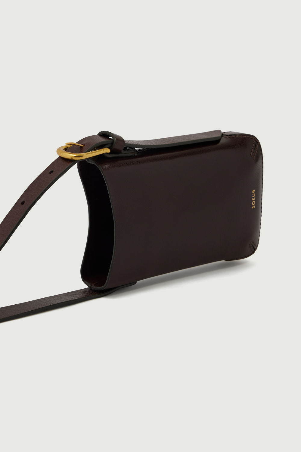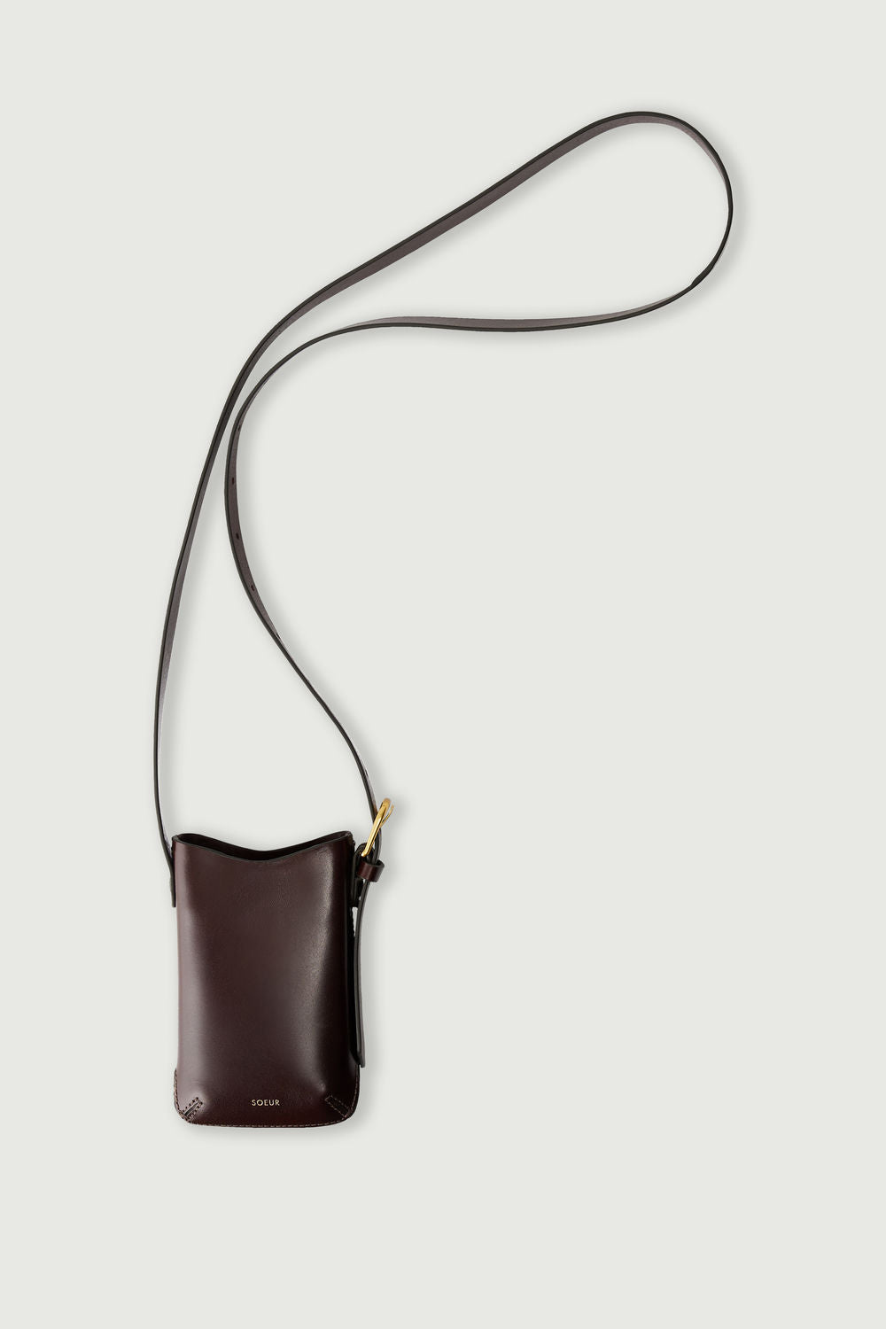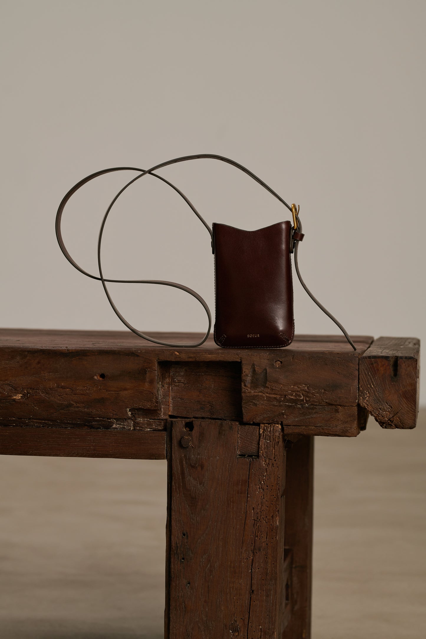 - Bandolera porta teléfono en cuero marrón