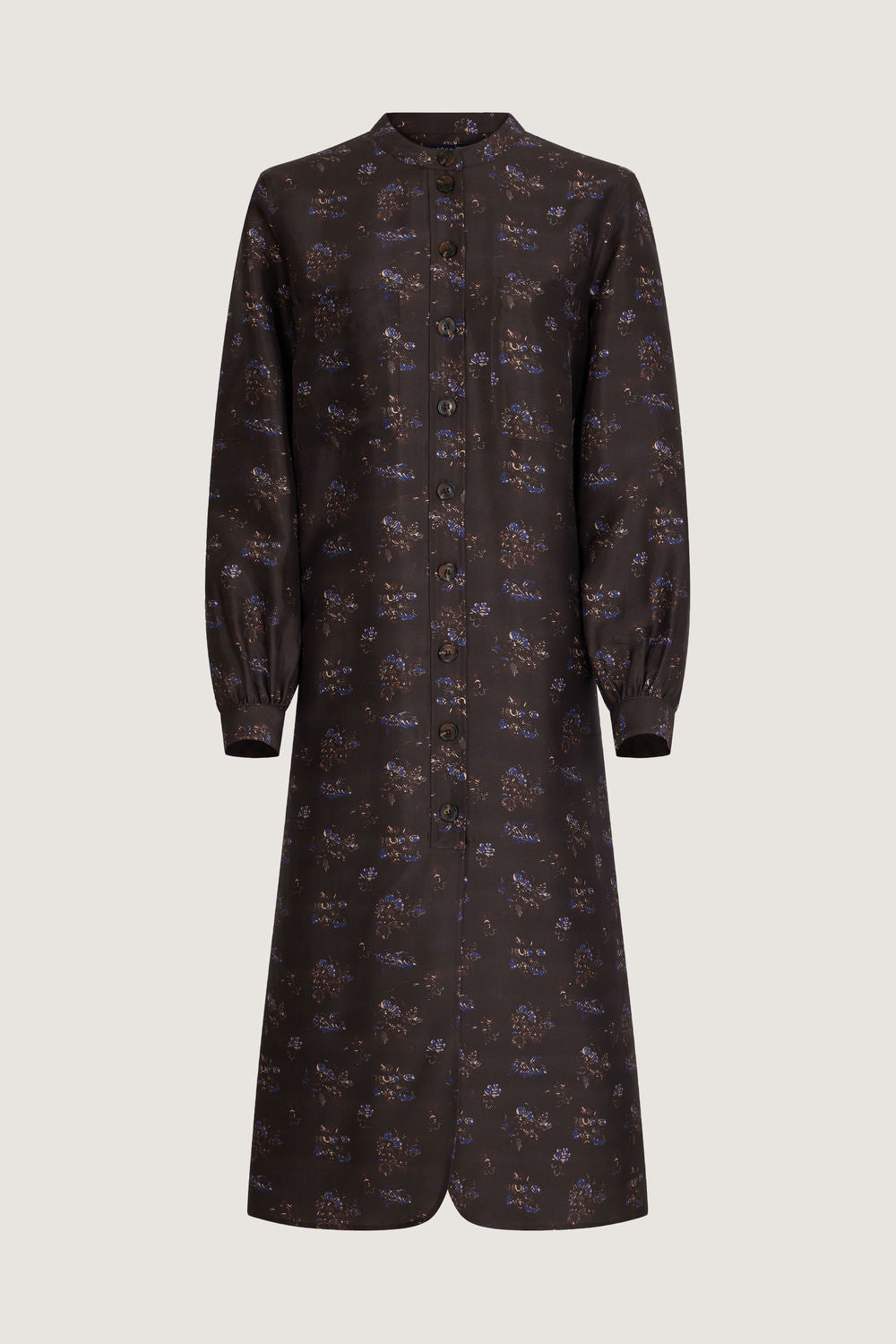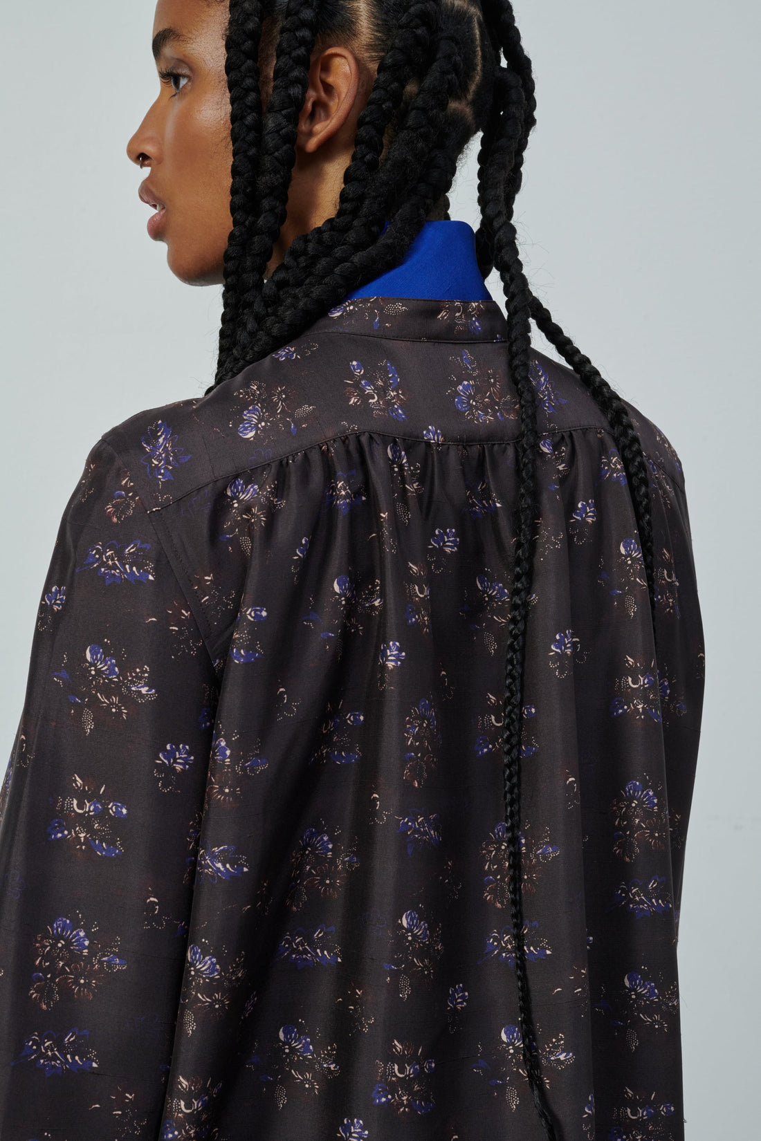 Vestido de seda de Dupioni estampada ciruela/azul