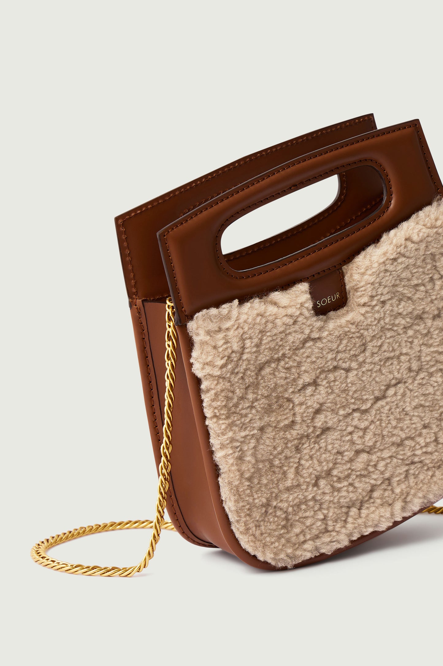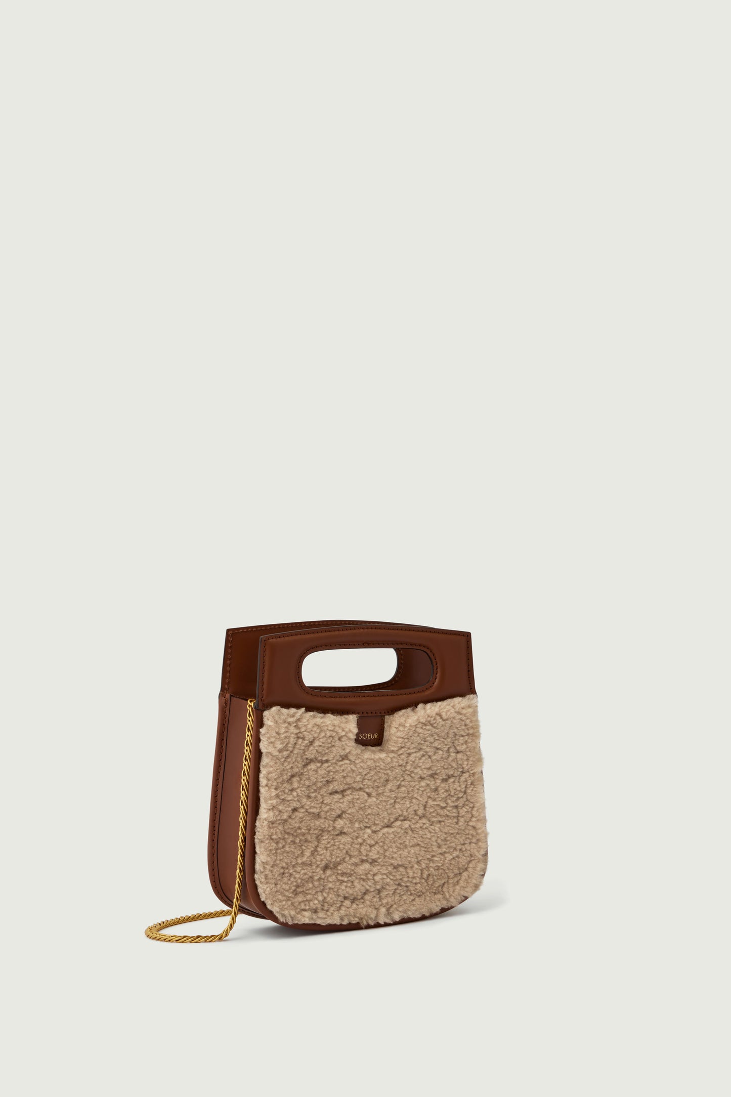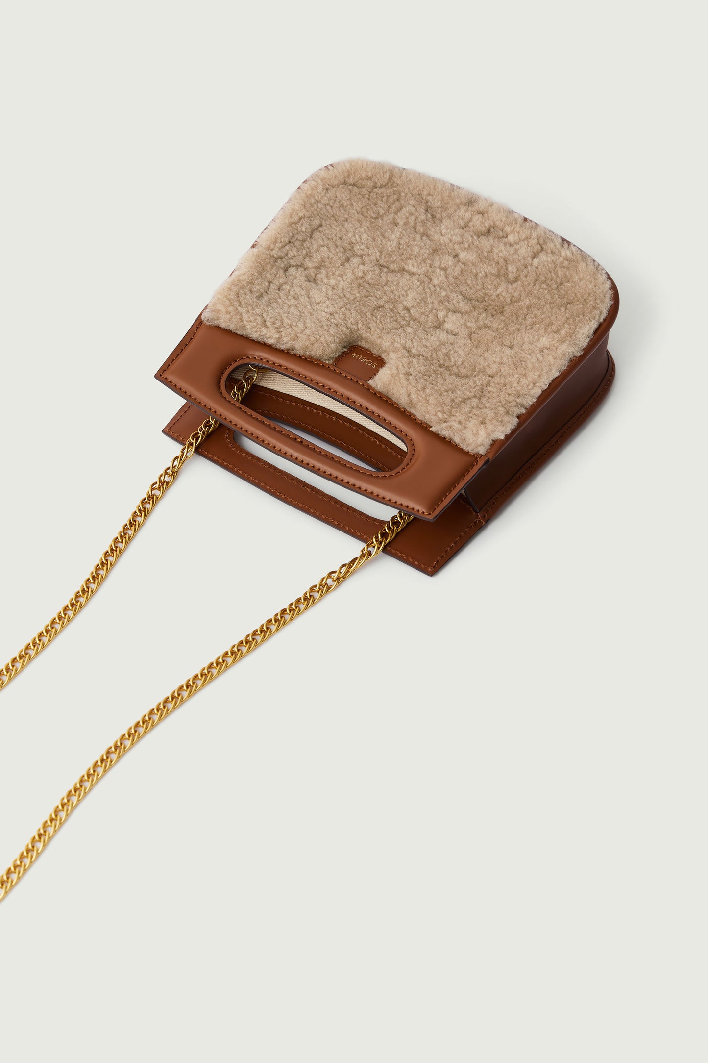 bolso cheri mini Pequeño bolso en cuero liso natural y shearling color arena
