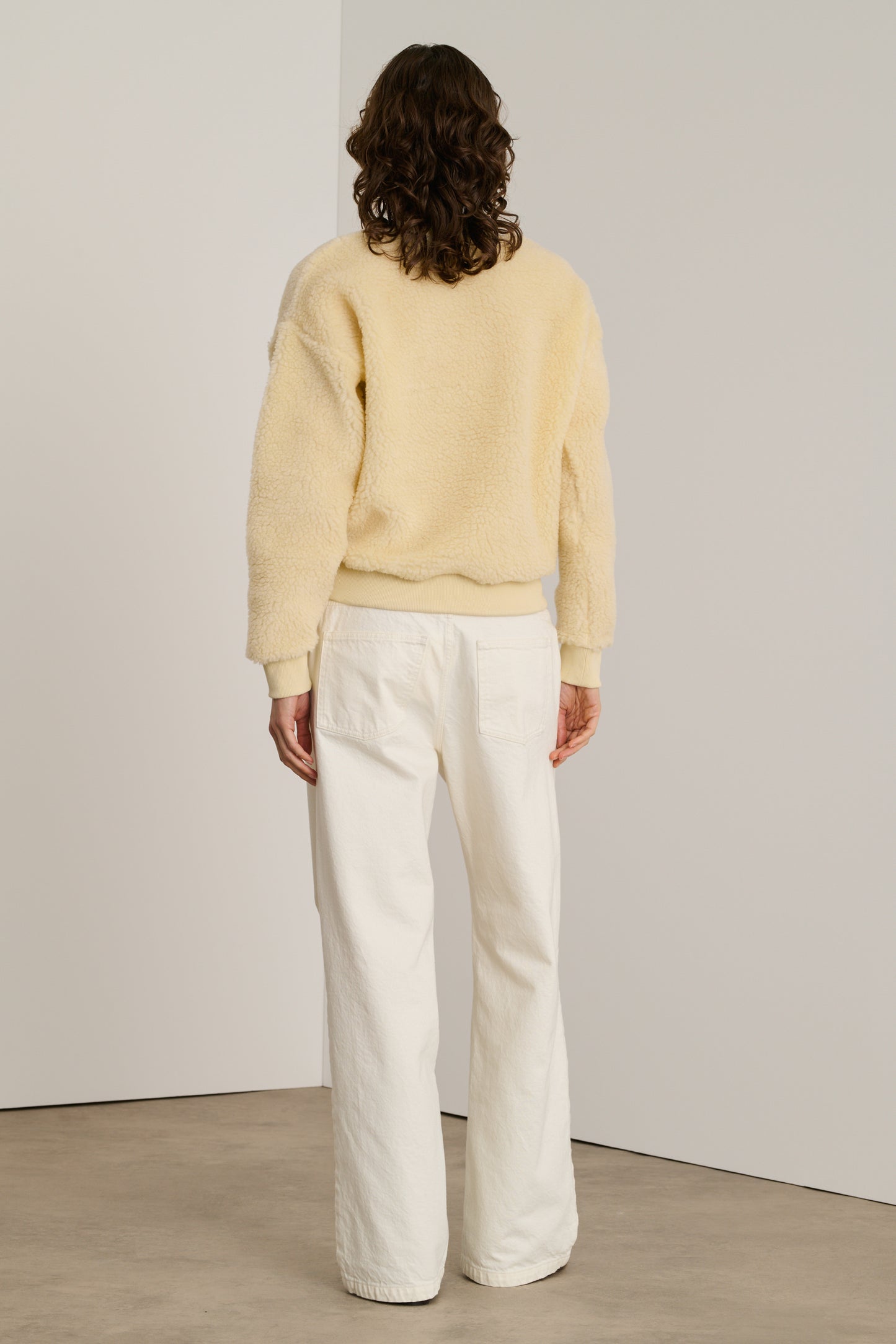 BLAKE es una sudadera de piel sintética. Su corte holgado ofrece una perfecta comodidad, mientras que las mangas largas aseguran un calor envolvente para los días más frescos.